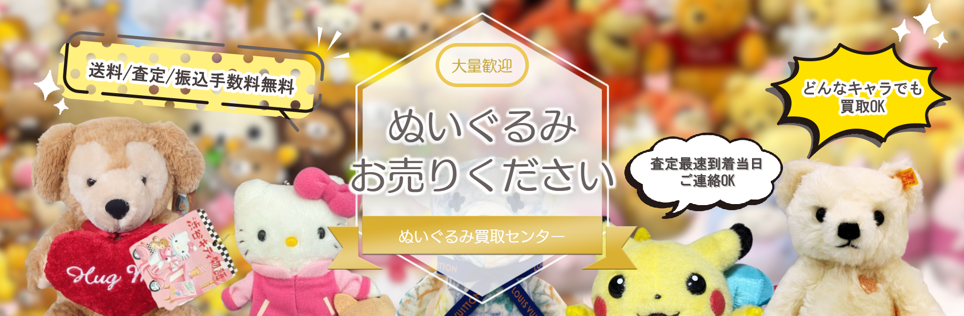 プライベートでもキャラクターが大好きなスタッフが揃っており、大切なぬいぐるみに愛情をこめて査定させていただきます。